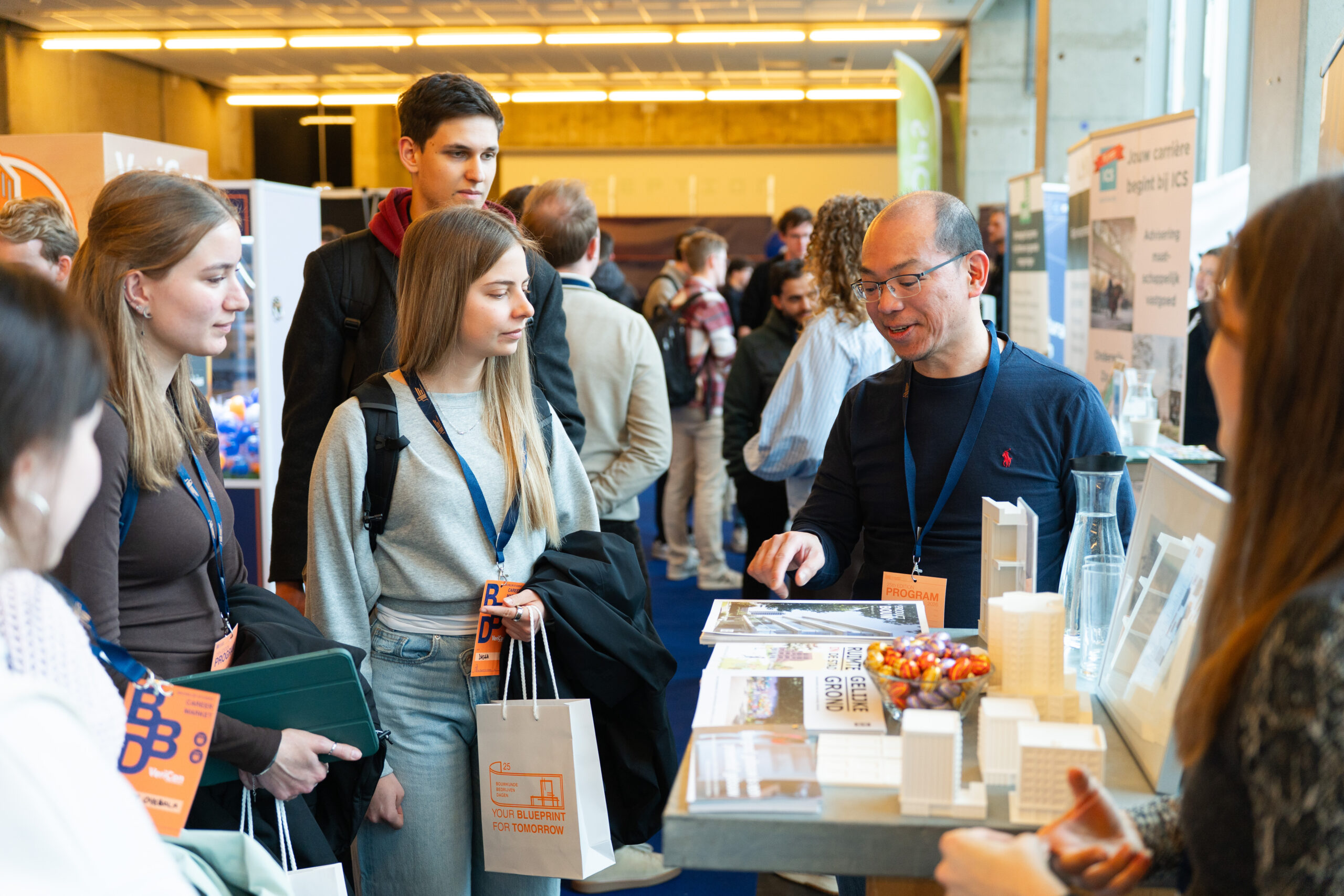 In other words; Are you looking for a (graduate) internship or job, do you want to know more about the possibilities after your studies and upgrade your network? Then visit the upcoming 25th edition of Bouwkunde Bedrijvendagen this March! See the pictures down below for an impression of the last edition of the October events 2025!
