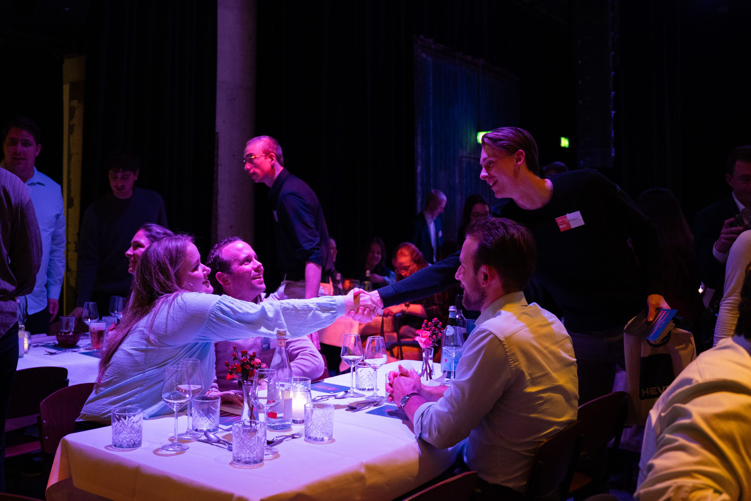 During the event, students will get the chance to talk to companies in an informal atmosphere. The Company Dinner consists of three courses with some drinks at the end to close the night. During the courses you can talk to the representatives of a company at the table assigned to you, after each course you switch to another table. After the last course you will get an opportunity to talk to any of the attending companies with a drink.